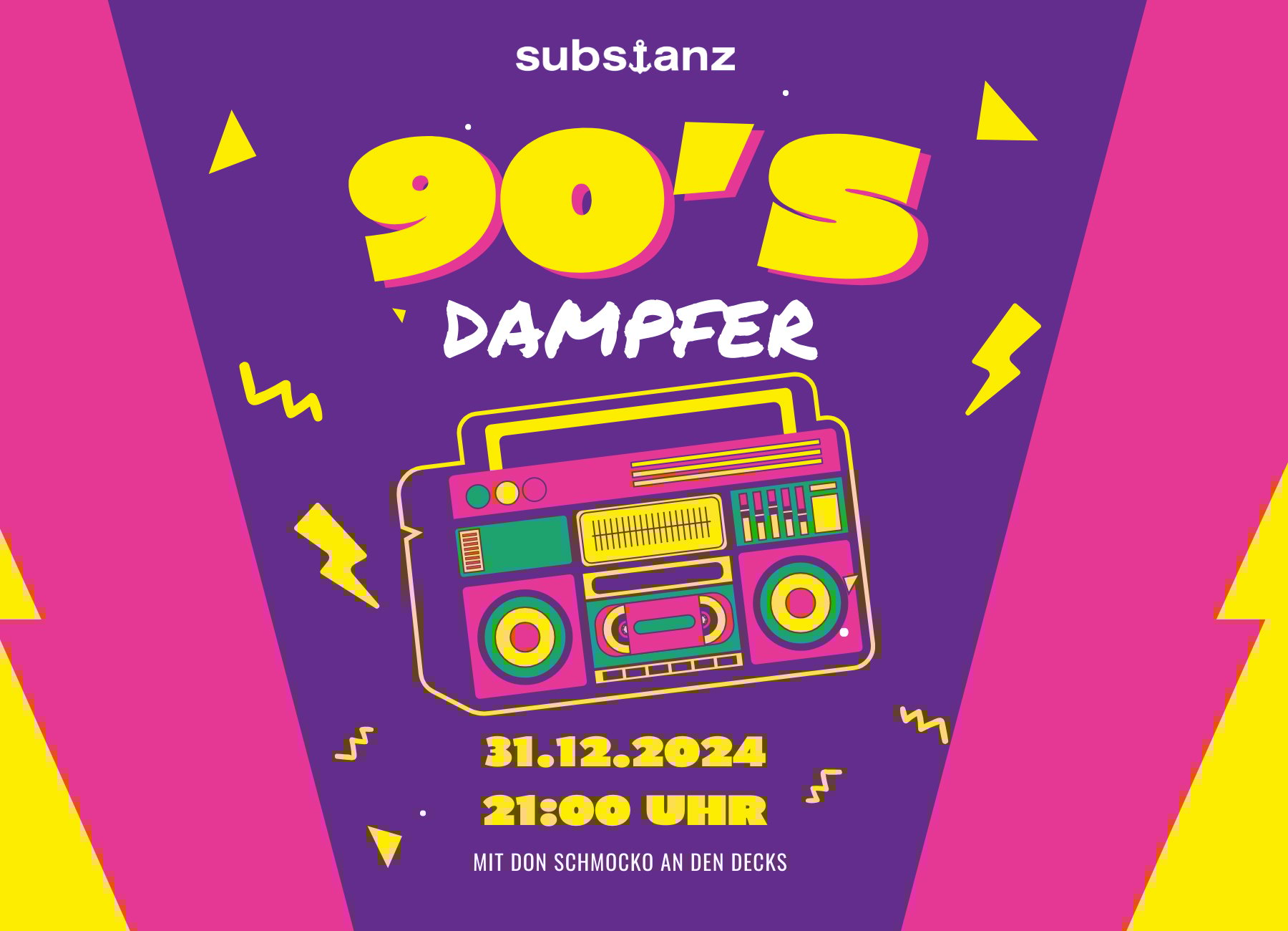 Beim Substanziellen 90's Dampfer werden auch an Silvester die Grenzen des guten Geschmacks ausgelotet. Verkleidung ist kein Muss, großer Durst allerdings schon. Wir sehen uns an der Bar!