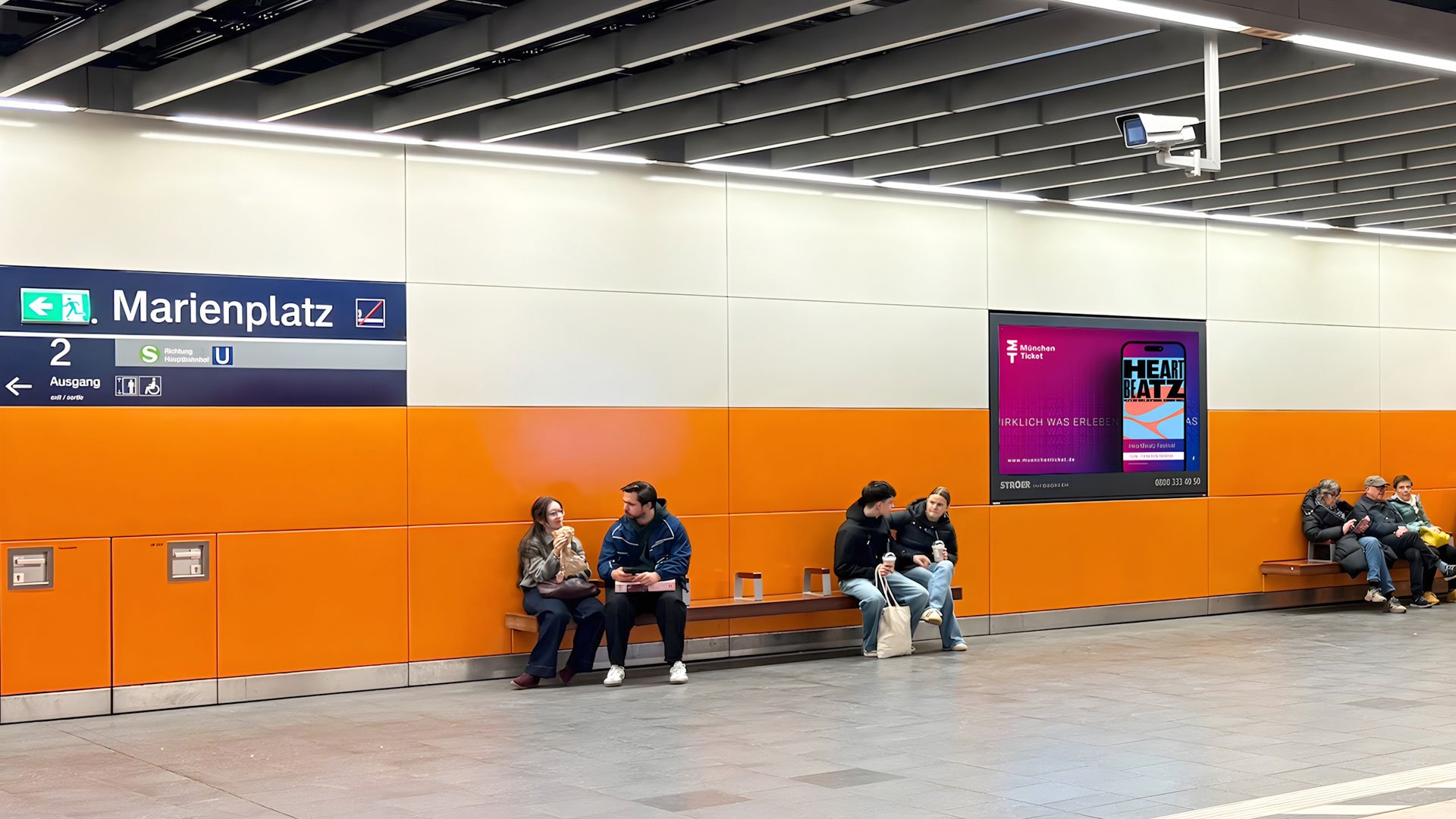 S-Bahn Haltestelle Ostbahnhof (S8) / Isartor (S1) / Hirschgarten (S6): Screens bei der Einfahrt sorgen für maximale Sichtbarkeit.